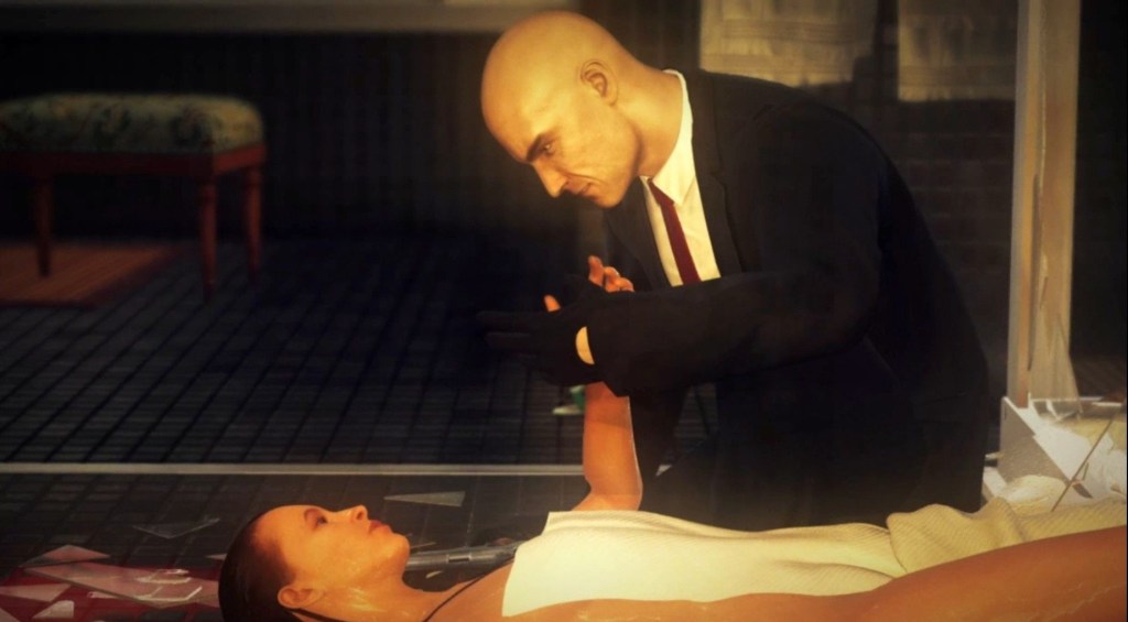 Next, Hitman is actually a game with a player fantasy that involves killing, centered around a character who was born, taught, and designed to kill. Why then, in this game, do I kill great magnitudes fewer people than I do in Uncharted or Tomb Raider? Why do I believe that this game about a born and bred sociopath treats killing and death with more respect than these two games? The first, more clear answer to these questions is because the game rewards tactical and clean play. The fewer loose ends you have, the higher your score will be, which naturally reduces the number of unintentional deaths that occur. You’ll have to choke out unfortunate witnesses, but otherwise, the list of casualties is usually limited to the target of your contract. Interestingly, the game also plays with the character of the people that you’ve been tasked to kill. Sometimes it’s a pompous, rich asshole, or perhaps this time it’s your manager Diana, someone who tried to escape this life, someone who cares deeply for Agent 47, knowing that he can change, that under his cold, sociopathic veil lies a heart of gold.