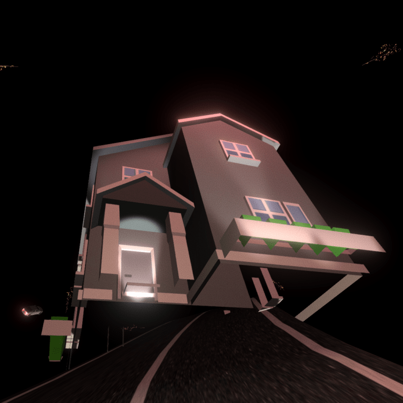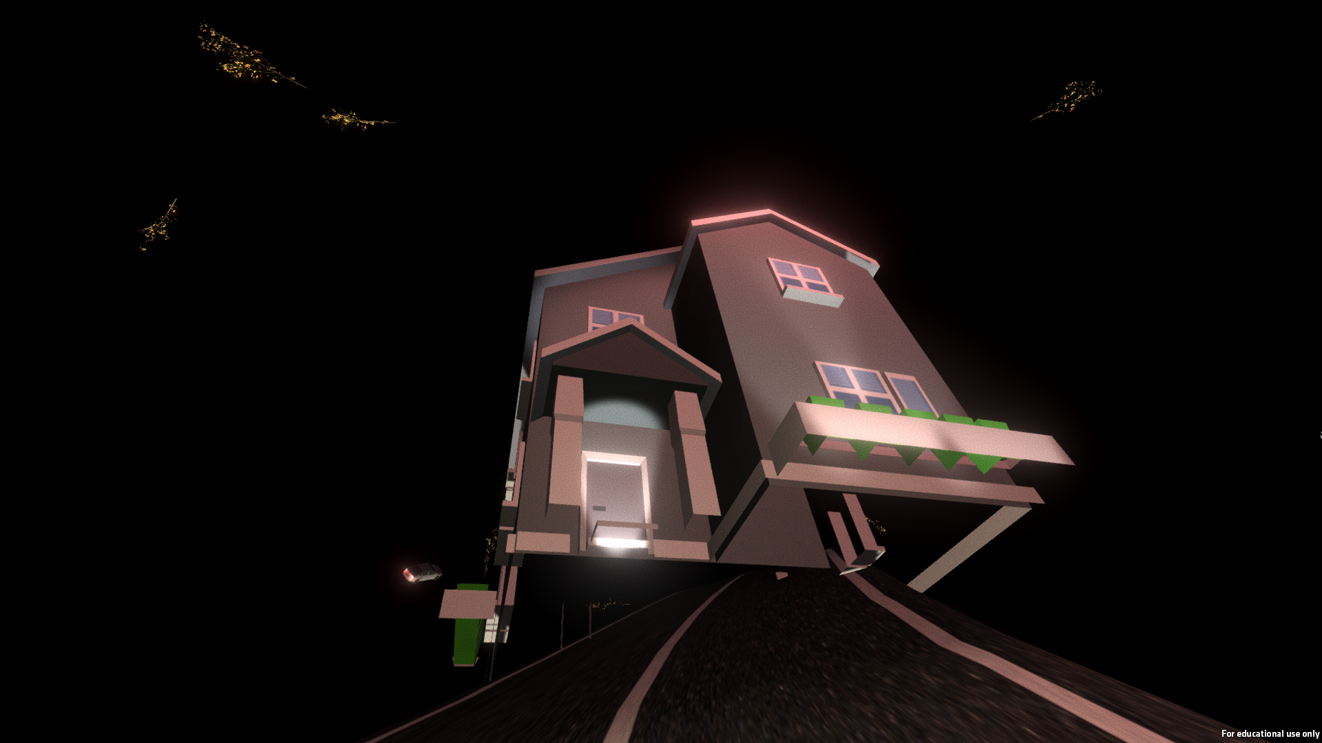 Overall the game was received well during playtests. Players were usually surprised when the house started to move. It had its flaws, however. I needed ways to encourage or force the player to look behind them, otherwise they could just completely ignore the house and race all the way to the end of the road without looking back once. One idea was to make it so that players had to walk backwards, away from the house, while also making sure not to fall off the road. Another was to make the speed and approach of the house dynamic and based on how the player is doing so that I could more easily control the experience that the player had with the house (kind of like the dynamic difficulty in Resident Evil, where if you’re doing well, the game starves you of bullets, but if you’re not, you get fewer spawns and more ammo).