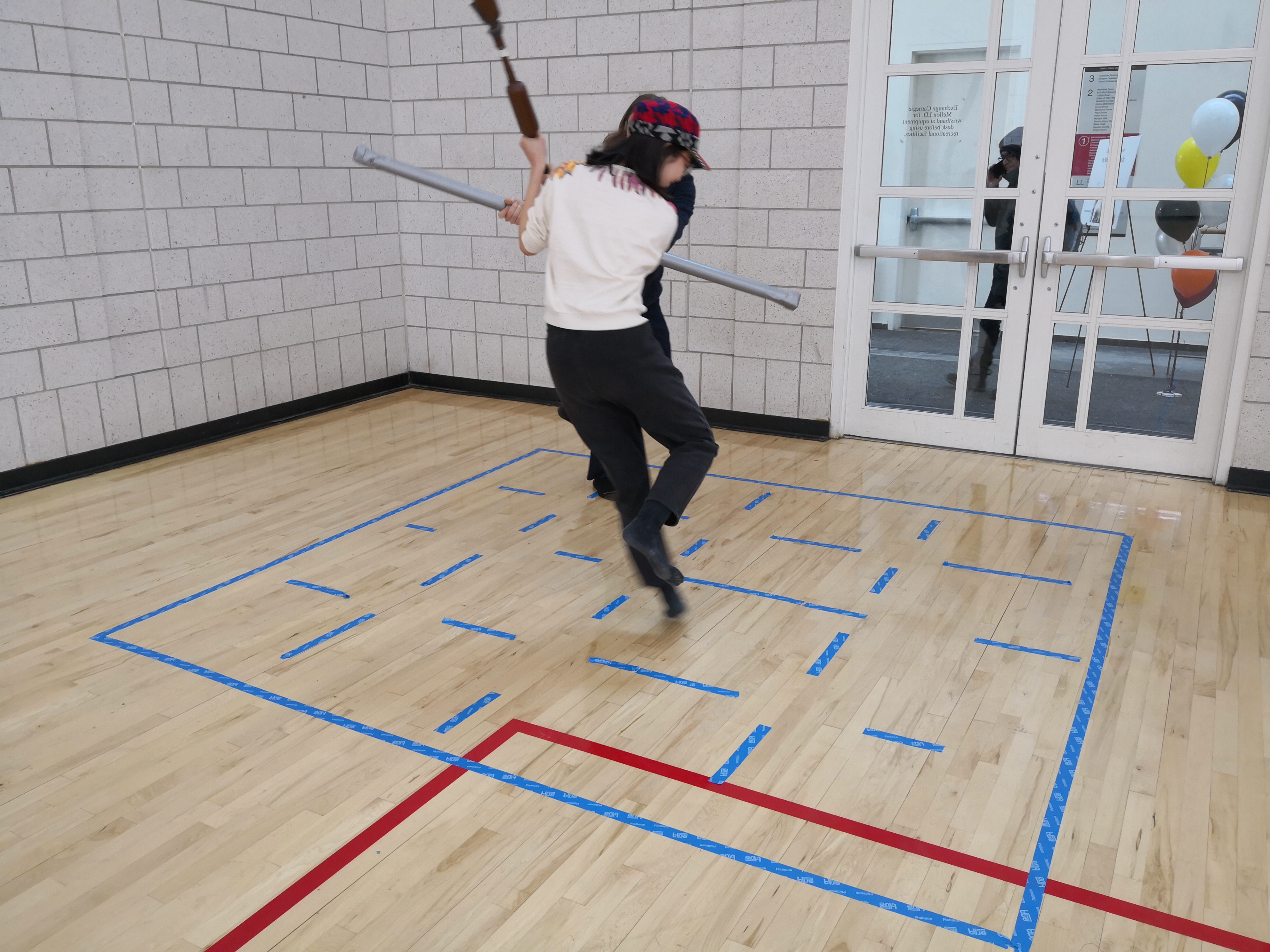 LARPscotch – Using available foam swords, I tried sparring while only using one leg and it was honestly very fun already. With added flavor justification and game mechanics, it could become not only a good variation of hopscotch, but yet another fun activity to use foam weapons for.